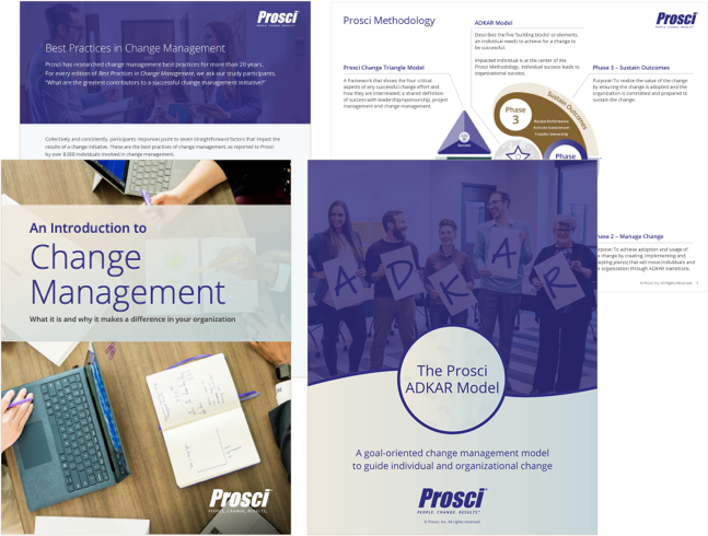 Au cours des vingt-cinq dernières années, la gestion du changement s'est développée et a atteint une maturité notable. Les études de Prosci nous révèlent que pour que les changements soient fructueux, il est essentiel de préparer, d'outiller et de soutenir les individus dans le processus de changement afin qu'ils puissent adopter ces modifications avec succès. Sans une adoption effective, les changements échoueront et nous ne parviendrons pas à réaliser les résultats escomptés.