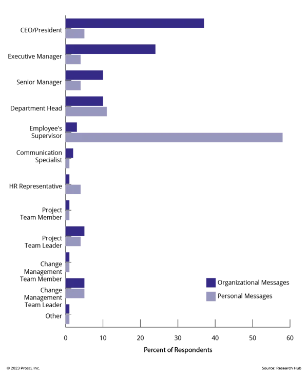 An example of tactics used to raise awareness and motivate employees to adapt to change is using preferred senders. Our research shows that employees prefer to receive messages about the personal impacts of a change from their direct supervisor but prefer executives and senior leaders as the senders of messages about the business case for change.