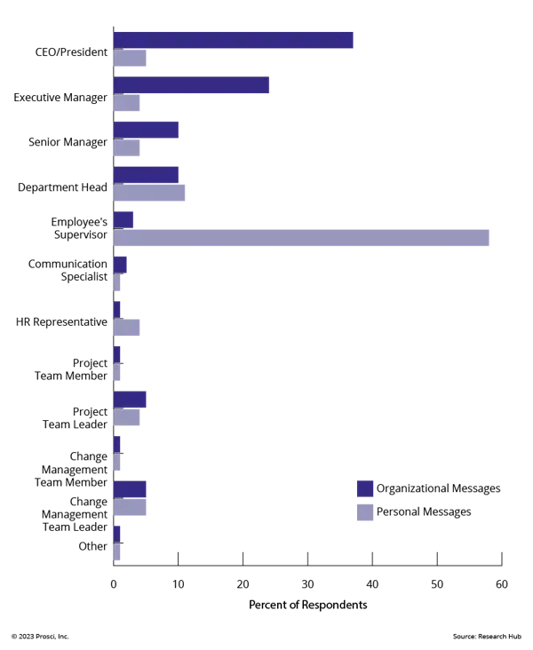 When it comes to messages about how change impacts the business or the organization, people want to hear from the person in charge—typically a senior manager or executive.