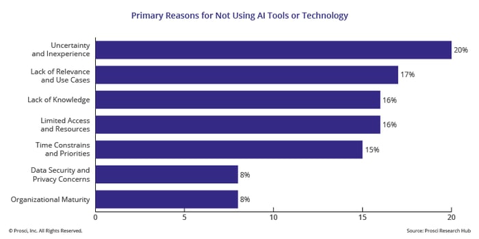 Finally, respondents identified inadequate organizational maturity as a reason for not using AI, including the right depth of change management expertise necessary to effectively implement AI technology in practice.
