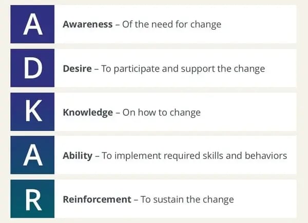 For example, in the Prosci ADKAR® Model, the major focus is on bridging the gap between knowledge and ability through training, education, practice and coaching.