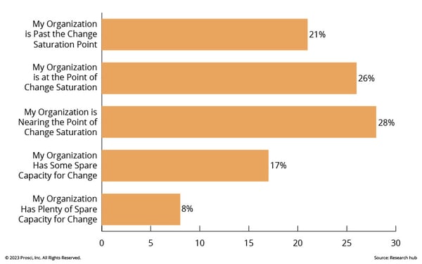 Seventy-three percent of Prosci Best Practices in Change Management research respondents claimed their organizations were near, at, or beyond the saturation point.
