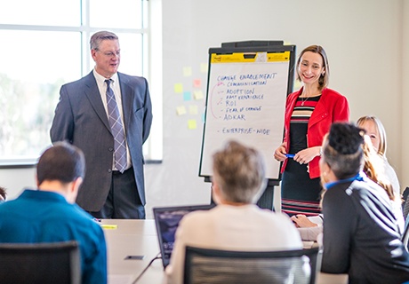 - Leadership: Understanding the executive’s role as a sponsor of change and learning how an organization drives adoption by engaging and aligning stakeholders across all levels of the organization.