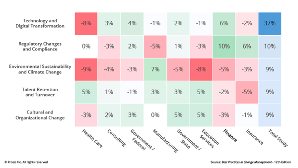 As of 2023, 88% of organizations achieved or planned to adopt a digital-first business strategy. Prosci research reflects this reality. According to over 10,800 change management professionals, technology and digital transformation are the most expected changes in 2024 and beyond.