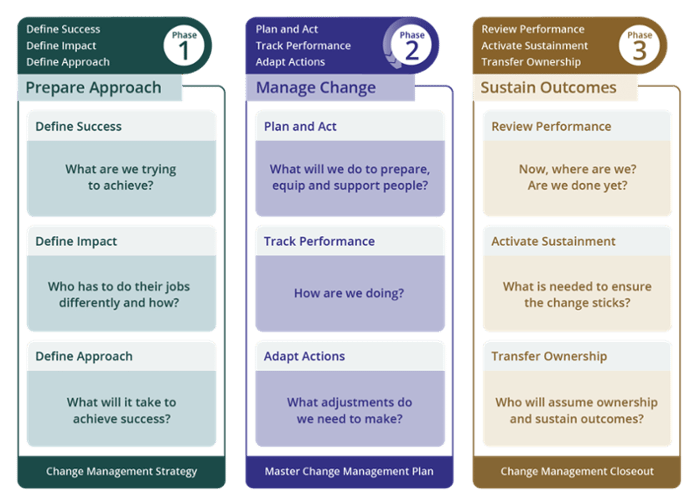 Implementing organizational change requires a structured approach to preparing, equipping and supporting individuals through organizational change.