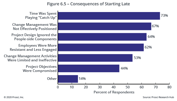 During times of extreme uncertainty, waiting to have complete information may feel like the best way to avoid rework, save costs, and keep employees well-informed. But waiting to implement change management activities later in the project lifecycle creates a new set of problems. The result can undermine project outcomes and your overall change management efforts.