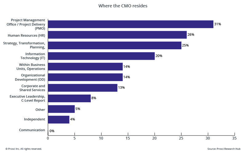 Our research shows that change management expertise lives in many functional areas of institutions, and most commonly in IT, HR, the project management office, and strategic planning office. If you already have change management professionals applying change management on projects in your organization, enlist them to help you present a case to leaders for why change management can benefit your project or initiative and the larger institution by sharing its benefits, how it works, success stories, and its ROI.
