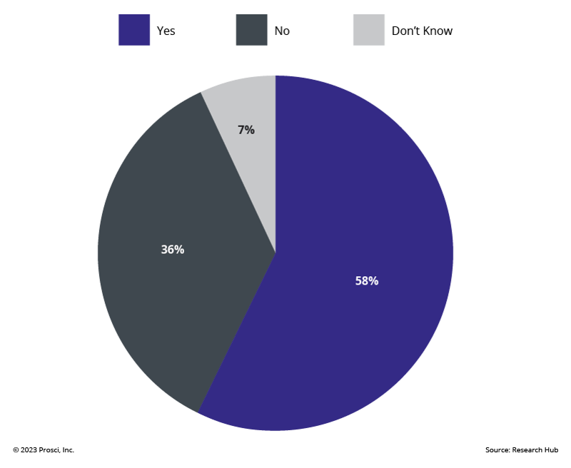 Participants in our Best Practices in Change Management research were asked if reinforcement and sustainment activities were planned for as part of their projects. Sixty-one percent of participants planned for these activities.