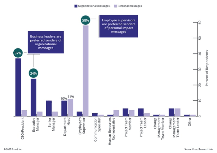 During a change, people prefer to receive certain messages from certain people. Our research shows that people managers are preferred senders of messages about personal impacts they may experience from a change. The right training equips these people managers with the skills to communicate effectively while helping to prevent and manage resistance.