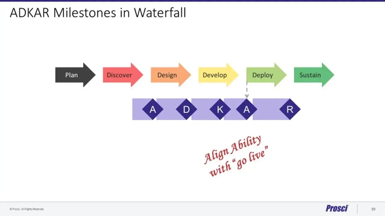 To effectively manage change, the approach to solution development you are using must align with the change management approach you are using—in this case, the Prosci ADKAR Model.