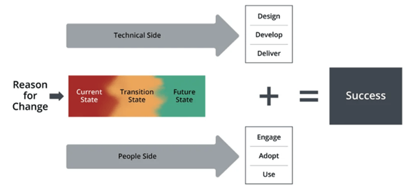 As mentioned earlier, the mistake leaders so often make is relying too heavily on communications and functional training, without considering what happens to people and processes when you introduce a massive technology project like an ERP system migration or implementation.