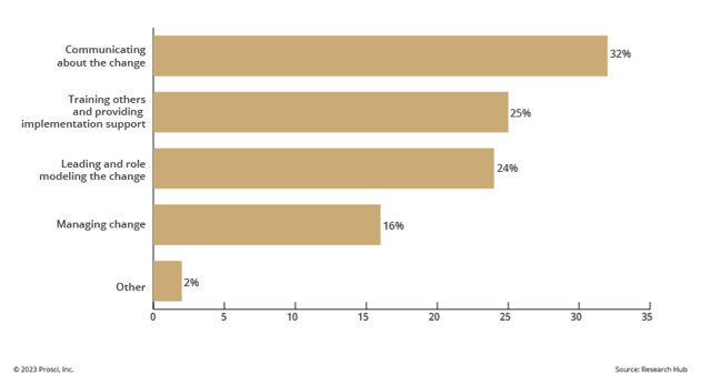 Los profesionales del cambio trabajan con las partes interesadas de la dirección y la gerencia para elaborar y llevar a cabo la estrategia de Gestión del Cambio. También desempeñan diversas funciones y a menudo son responsables de la gestión general del proceso de adopción del cambio, entre las que se incluyen: