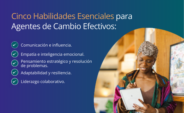 Aunque hay muchos tipos de agentes del cambio, suelen tener muchas cualidades clave. Éstas son algunas de las principales aptitudes que necesitan los agentes de cambio para impulsar un cambio eficaz en su organización.