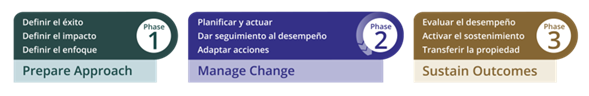 Entre otras cosas, el proceso en 3 fases permite a las organizaciones determinar cuándo están preparadas para el cambio, comprender el estado actual y futuro, e identificar a las partes interesadas y la gobernanza.