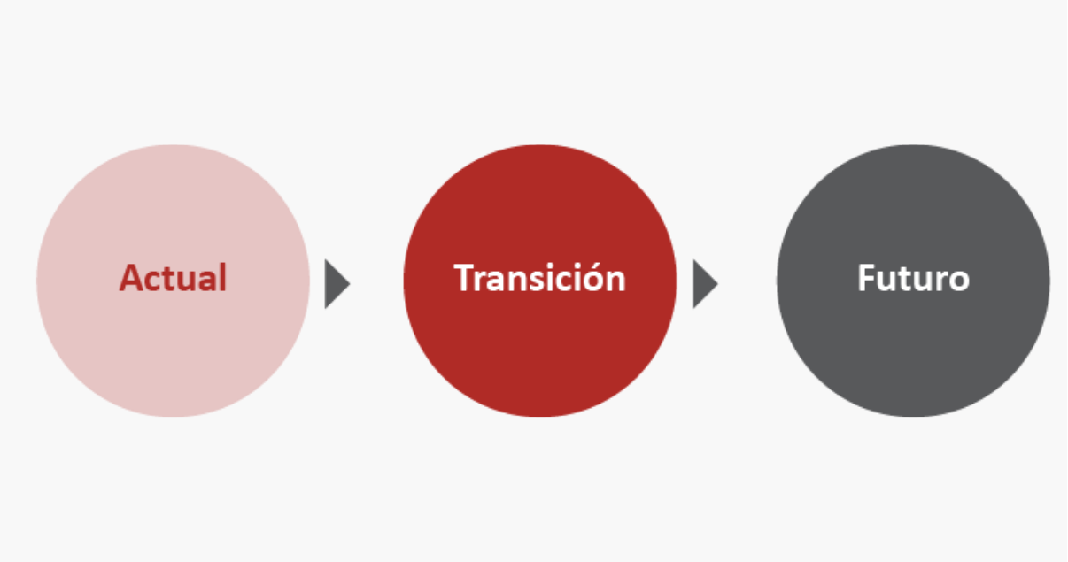 Fases del cambio: estado actual, estado de transición y estado futuro |