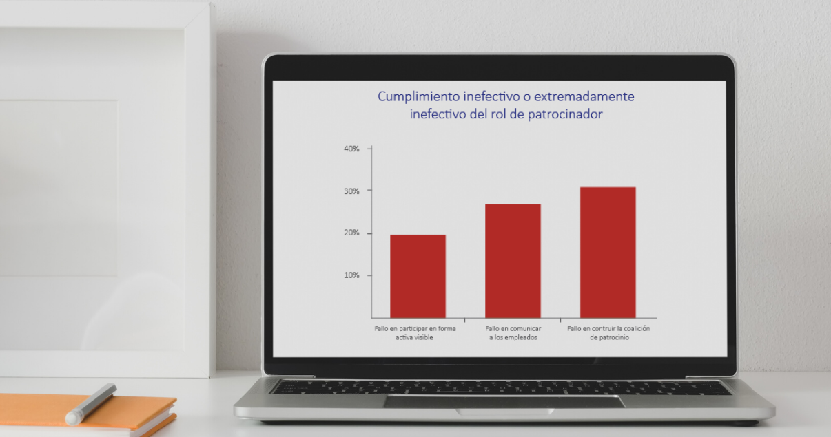 Cuando se les pidió que identificaran el mayor obstáculo para el éxito, los participantes en el mismo estudio de Mejores Prácticas identificaron la falta de un patrocinio efectivo del cambio por parte de los líderes principales como su principal obstáculo para el éxito. Los patrocinadores estaban inactivos o invisibles, no estaban en el nivel correcto, no alineaban a otros líderes en torno al cambio y vacilaban en su apoyo. El patrocinio ineficaz dio origen a mayor resistencia y a un progreso más lento hacia la realización de los resultados deseados por la organización.