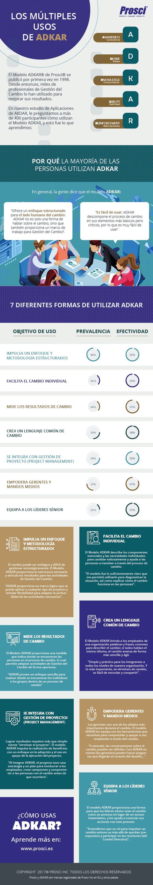 En los últimos 15 años, el modelo ADKAR se ha convertido en uno de los modelos de cambio más utilizados en el mundo. Múltiples organizaciones en el mundo encuentran valor en su simplicidad y efectividad. Si bien la intención original del modelo era articular los hitos del cambio individual, a lo largo de los años, los profesionales del cambio (change practitioners) han encontrado formas nuevas y creativas de aprovecharlo para impulsar el cambio en sus organizaciones.