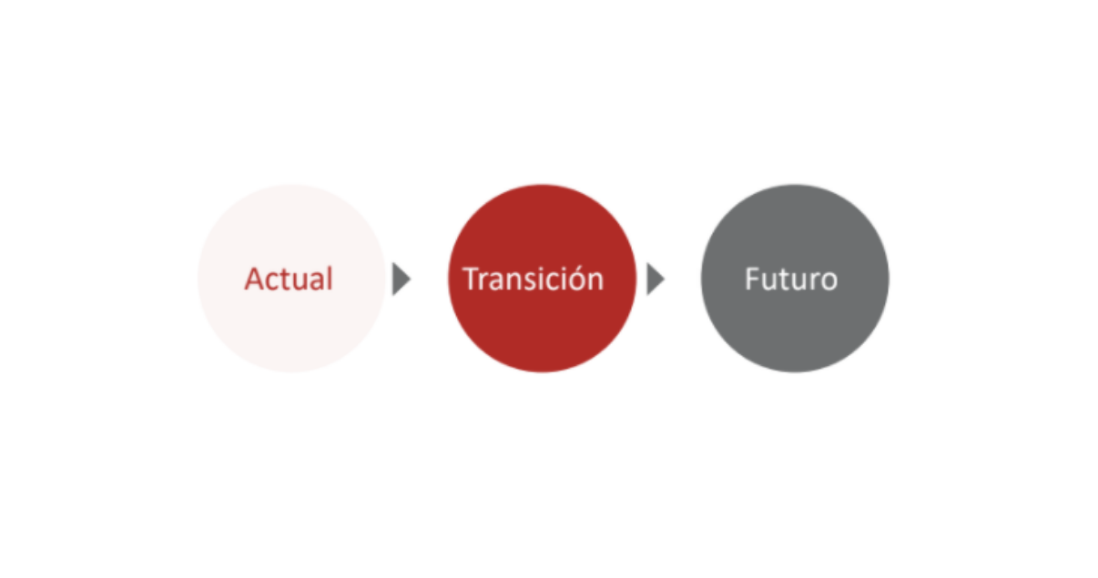 La Transformación Digital, entendida como un Cambio profundo en las organizaciones es un proceso largo y complejo. Es un proceso que busca llevarnos de la manera en la que trabajamos y operamos hoy (Estado Actual), a una nueva manera de trabajar y operar (Estado Futuro). Este proceso requiere de tiempo y de un esfuerzo intencional si queremos llegar exitosamente al Estado Futuro.