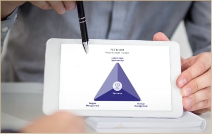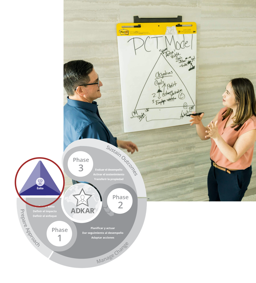 El Modelo de Triángulo del Cambio de Prosci (PCT), junto con el Modelo ADKAR, constituyen los dos modelos fundamentales de la Metodología Prosci. Este sencillo pero poderoso marco de referencia ayuda a los profesionales de Gestión del Cambio a comprender los cuatro aspectos críticos de cualquier cambio exitoso y cómo promueven la salud de un proyecto. También resalta dónde se ubica Gestión del Cambio en un contexto más amplio, incluyendo la gestión de un proyecto y cómo se involucran los líderes.