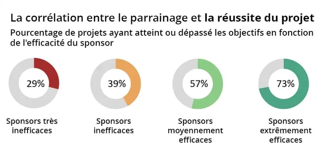 Il Il est difficile d'ignorer le poids de 20 années de recherche sur ce sujet, et il n'est donc pas difficile de faire valoir l'importance d'un sponsor actif et visible. Une exploration plus approfondie de ce sujet dans la recherche sur les meilleures pratiques de Prosci fournit une considération encore plus convaincante, à savoir la forte corrélation entre l'efficacité du sponsor et la mesure dans laquelle les projets atteignent ou dépassent leurs objectifs, comme l'illustre l'extrait suivant de la dernière édition de l'étude de recherche semestrielle :