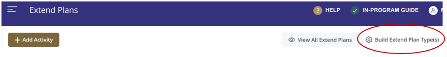 - In the top right corner, click on the [Build Extend Plan Type(s)] button.