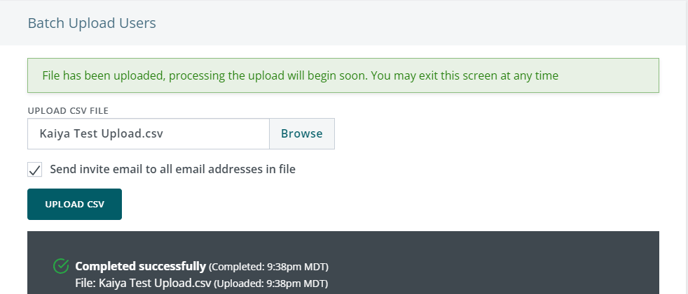 Note: If you are editing existing users and don't want to send a notification from the portal, you can uncheck the "Send invite email to all email addresses in file" below the upload.