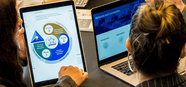 Para começar a integrar essa dimensão, sua organização deve escolher uma única metodologia de gestão de mudanças. Isso permite que todos, desde líderes executivos e gestores até equipes de projeto e colaboradores da linha de frente, usem os mesmos termos e “falem a mesma linguagem” durante importantes mudanças organizacionais.