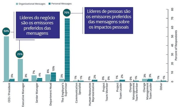 - Líderes sêniores devem declarar as razões do negócio para a mudança constantemente. Felizmente, o comunicador tem credibilidade. A mensagem deve ser aberta, transparente e enviada entre cinco e sete vezes.