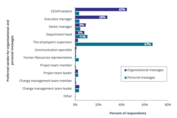Do ponto de vista psicológico, acontece que a maioria das pessoas não sabem o quão pouco elas realmente sabem. E assim, quando você combina isso com o viés de ancoragem e confirmação, pode se tornar uma potente fonte de resistência à mudança. Precisamos dar às pessoas o máximo de informações que elas precisam por meio de seus canais preferidos quando elas precisam. Os líderes seniores devem fornecer as mensagens “alto e por que”, enquanto os gerentes de pessoas enviam as mensagens “O que há para você, o que há para mim?”, finalmente reconhecendo que ninguém sabe tudo.
