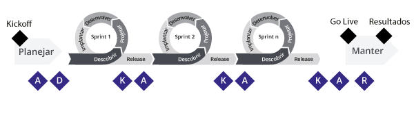 Para gerenciar as mudanças com eficiência, a abordagem de desenvolvimento de soluções que você está usando deve estar alinhada com a abordagem de Gestão de Mudanças que você está usando – neste caso, o Prosci ADKAR® Model.