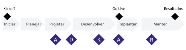 Para alinhar os resultados do ADKAR com uma abordagem sequencial ou Waterfall, você deve começar fazendo a pergunta: “Quais datas você já conhece para o seu projeto?” Normalmente, as principais datas dos marcos do projeto devem ser definidas para o início, entrada em operação e resultados (ou seja, quando se espera que os resultados sejam alcançados). Você então alinha a Habilidade com a data da ativação. Fazemos isso para garantir que as pessoas tenham a capacidade de adotar e usar a solução quando ela for implementada. Em seguida, você mapeia quando os outros quatro elementos precisam ser alcançados em relação ao cronograma do projeto. Alinhar os resultados do ADKAR a datas específicas permite que você estabeleça um cronograma para as atividades de Gestão de Mudanças necessárias para preparar, equipar e apoiar indivíduos e grupos afetados para adotar e usar a solução.