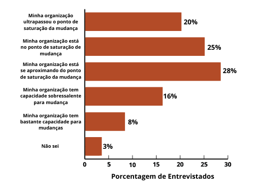 - 73% das organizações estão perto, no ou já passaram o ponto de saturação de mudanças