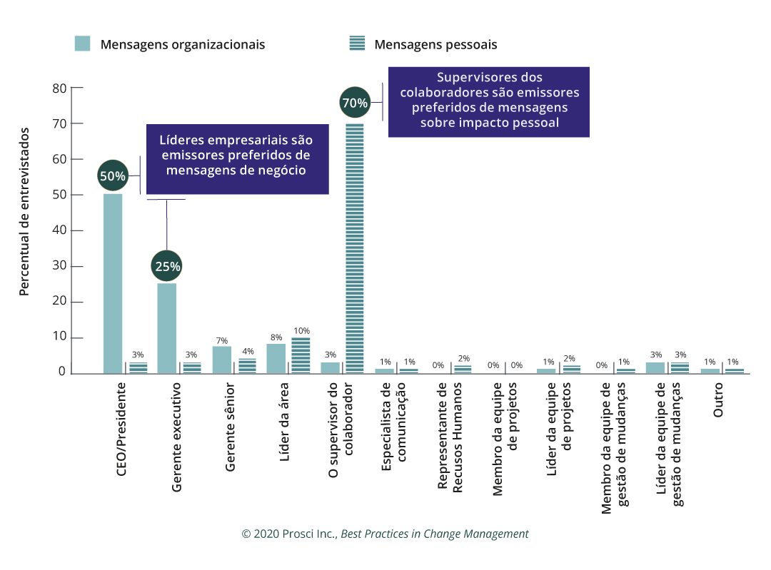 Para remediar um ponto de barreira no Conhecimento, você pode agendar um briefing para o patrocinador, talvez com toda a equipe de liderança sênior, porque outros também podem ter esse ponto de barreira. Também poderíamos fornecer dados sobre a importância do papel do patrocinador. Por exemplo, sabemos por nossa pesquisa de Melhores Práticas em Gestão de Mudanças que o indicador número um de sucesso de projetos bem-sucedidos é um patrocínio ativo e visível. Também sabemos por nossa pesquisa que patrocinadores e líderes seniores são os remetentes preferenciais de mensagens organizacionais, o que destaca a importância de seu papel como comunicadores.