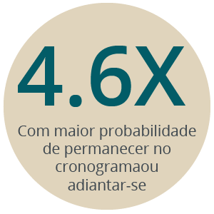 A pesquisa da Prosci sobre métricas de gestão de mudanças mostra uma ligação direta entre a medição da conformidade e o desempenho geral com o cumprimento e a superação dos objetivos do projeto.