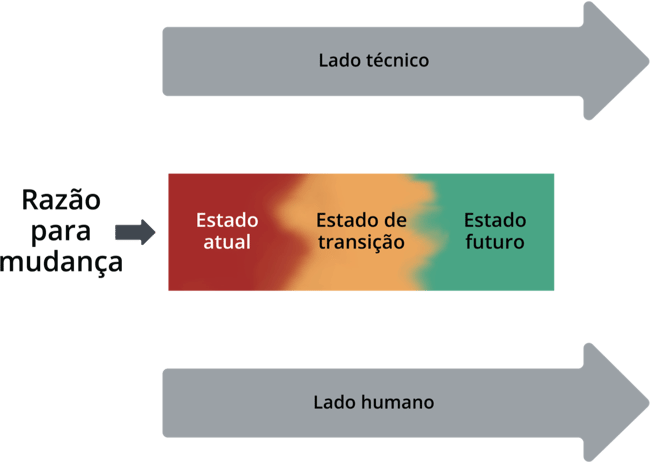 Para serem bem-sucedidos, os gestores de mudanças colaboram com os gestores de projeto e desenvolvedores de soluções para integrar o lado técnico e o lado humano da mudança.