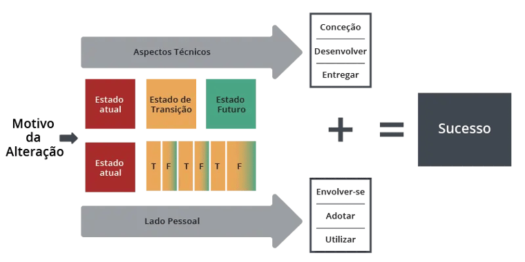 - Lado humano: Centrado no envolvimento dos indivíduos afetados e no apoio a eles para que adotem e usem a mudança de forma eficaz. A gestão de mudanças fornece a estrutura para alcançar esse resultado.