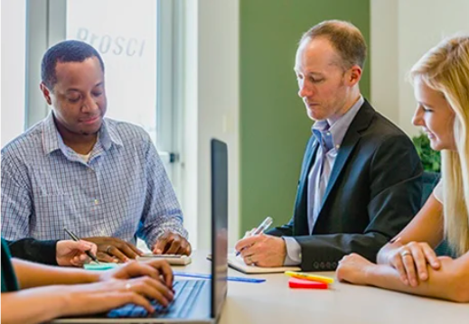 A estrutura da Prosci para conectar as pessoas aos resultados da empresa é chamada de exercício dos 4 P’s. Para experimentar, crie quatro colunas em uma folha de papel ou quadro branco e rotule-as como Projeto, Objetivo, Particulares e Pessoas. Na coluna Projeto, escreva o nome do projeto. Nas colunas Objetivo, peça aos membros da equipe que listem os motivos da mudança. Em Particularidades, peça aos membros da equipe que detalhem as mudanças específicas em processos, sistemas, estruturas organizacionais etc. resultantes do projeto ou iniciativa. E na coluna final, Pessoas, peça à equipe para listar os indivíduos e grupos que farão seu trabalho de maneira diferente após o projeto. Por fim, use o conteúdo que você criou como contexto para discutir a conexão entre as mudanças do projeto e a gestão da mudança .