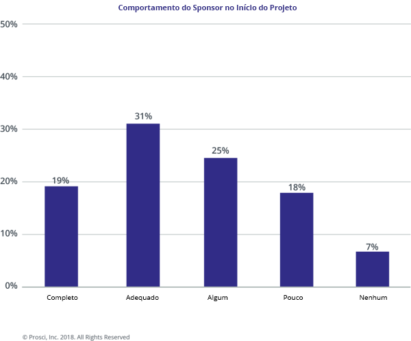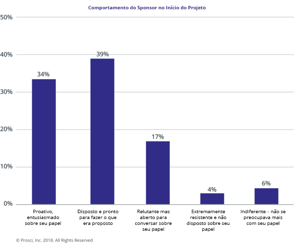 Os participantes, na Pesquisa Prosci, descreveram seus patrocinadores no início do projeto. Os dados mostram que a maioria dos executivos se envolveu no papel de patrocinador. Mais de um terço foram proativos e entusiasmados com o patrocínio da mudança e quase 40% estavam prontos para fazer o que foi pedido. Apenas um quarto dos participantes indicou alguma hesitação, resistência ou indiferença do seu patrocinador.