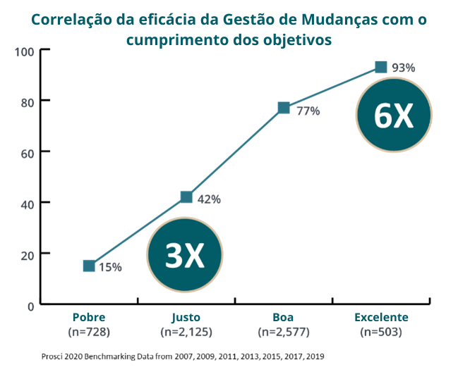 A pesquisa da Prosci mostra uma correlação direta entre aplicar uma excelente gestão de mudanças organizacionais a projetos e ser: