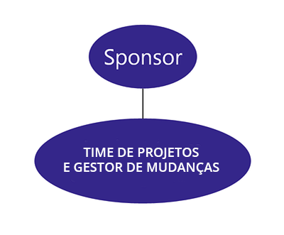 O recurso de Gestão de Mudanças está na equipe do projeto e é suportado por uma equipe externa de Gestão de Mudanças.