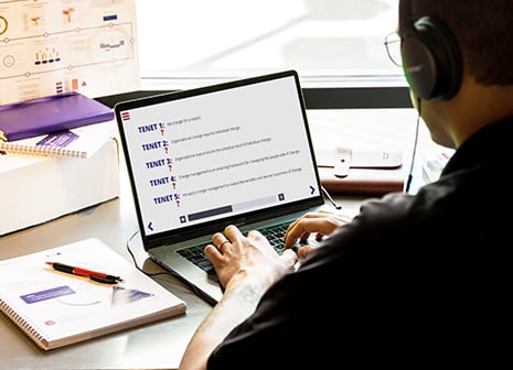 A mudança é individual e as pessoas precisam entender o porquê. Tratar a mudança como um processo é um componente central do sucesso da mudança e da Gestão de Mudanças bem-sucedida. Isso se alinha ao 4º dos Cinco Princípios da Gestão de Mudanças, “A Gestão de Mudanças é uma estrutura capacitadora para gerenciar o lado humano da mudança”.