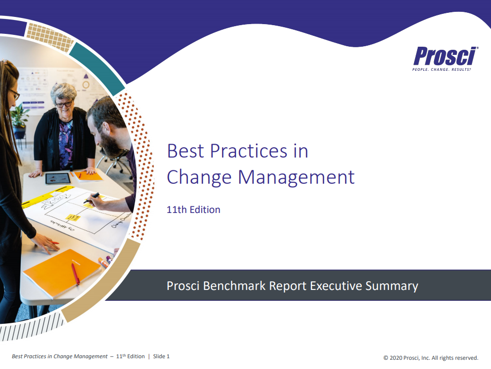 Applying a structured and intentional approach to change management reduces the costs, risks and negative consequences of poorly managed change. And Prosci’s Best Practices in Change Management research consistently shows that change management significantly improves the likelihood of change success.