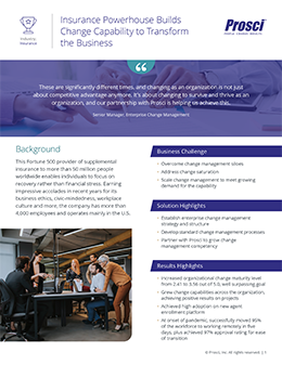Building change capability is ultimately about developing the change management strategies, skills and resources to do change better as an organization. By partnering with Prosci and leveraging the Prosci Methodology, the company is focusing on the people side of change—driving project success and helping to transform the business.